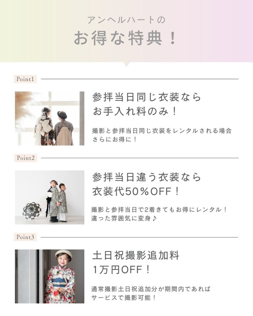 特典②参拝当日違う衣装なら衣装代50%OFF!