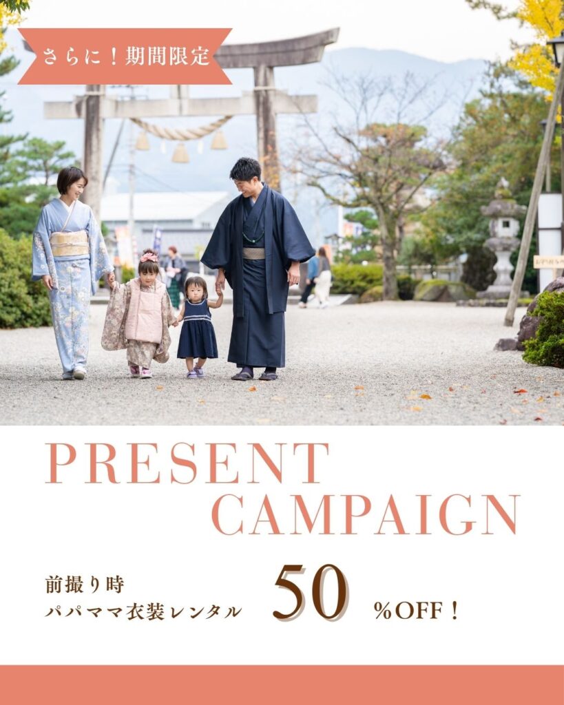 特典③前撮りパパママ着物代半額!