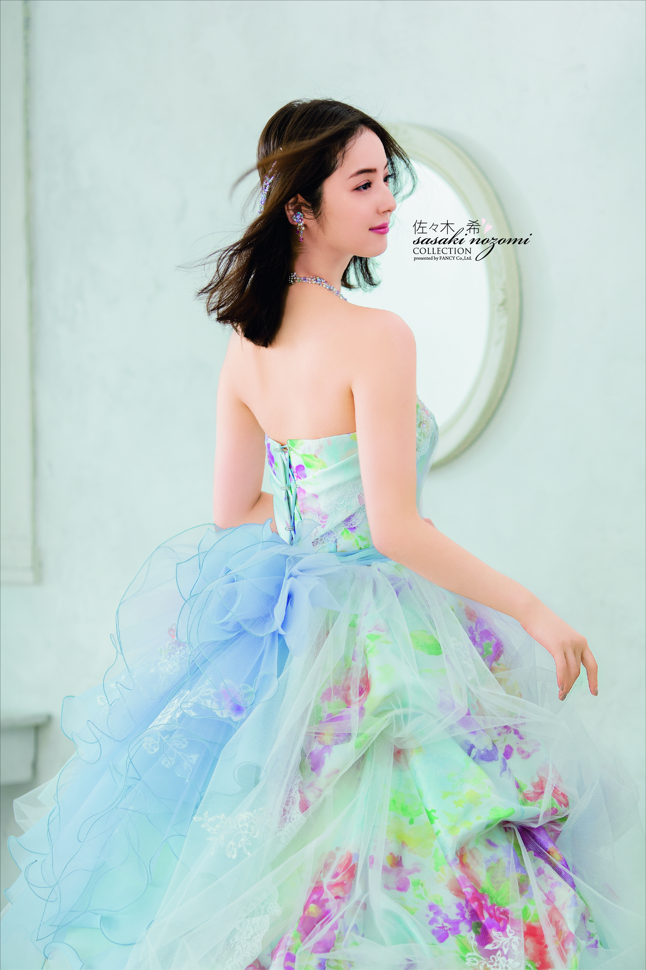 人気モデル佐々木希ちゃんプロデュースのカラードレス♪ 多彩プリントとレインボーカラーのチュールをMIXした華やかなグリッター使用のドレス。 ふわふわチュールの中に鮮やかなプリントが優しく組み合わさり、可愛すぎない爽やかなボリュームラインの1着♥ 春夏挙式のかたオススメですよ! また緑の中でのフォトウェディングにも映えること間違いなし!! 当店入荷は年末予定 気になる方は是非お問合せくださいませ❤